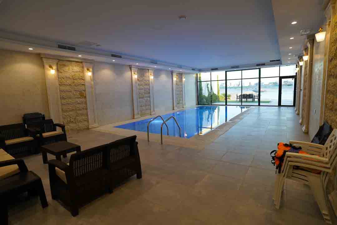 -حمام سباحه 10 في 5 داخلي مع سخان مطل على الخور مباشرة عمق المسبح : 0.90 لي 1.50 سم.