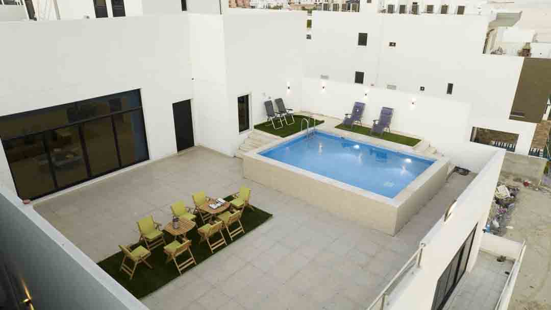 -صاله كبيره تطل على الروف والمسبح
