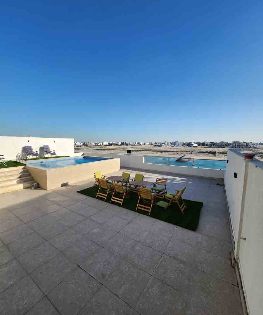 -جلسه خارجيه كبيره في الروف مع منطقه للشواء