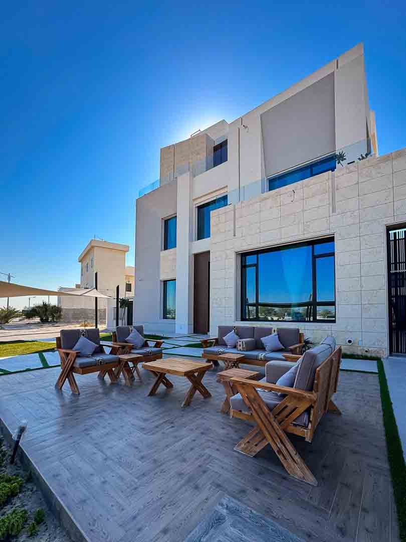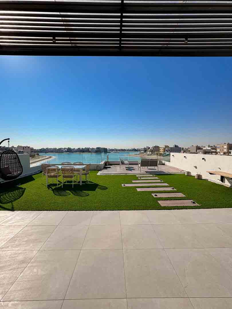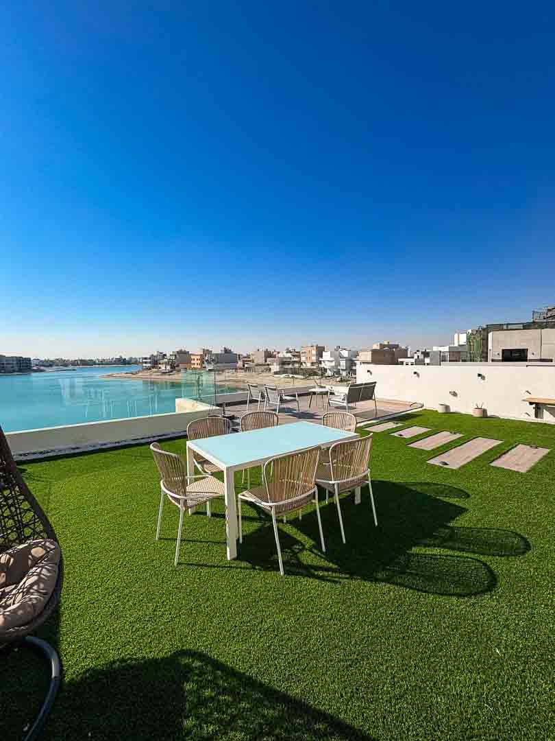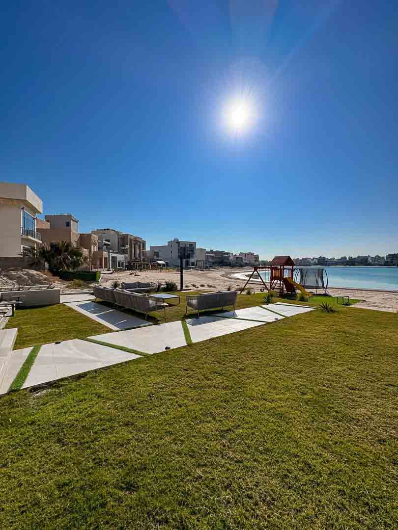 -حديقه كبيره عالبحر مع جلسات تكفي ٢٠ شخص وكراسي اضافية