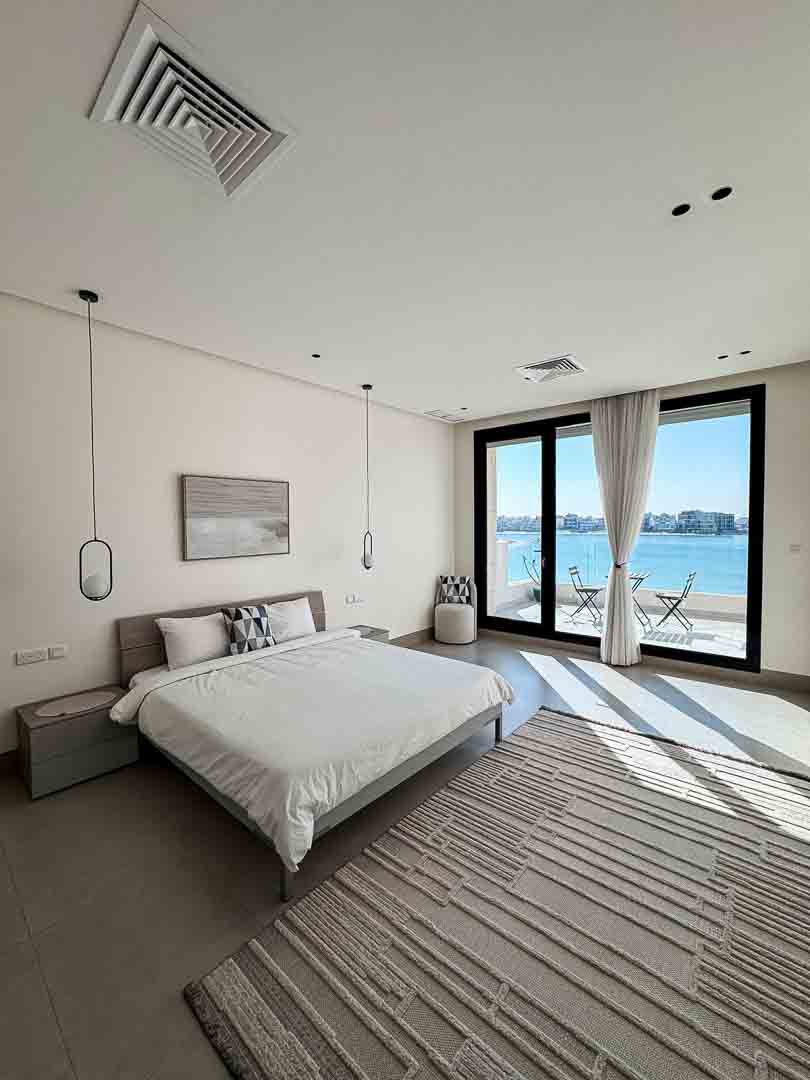 غرفة ماستر مع بلكونة و حديقة معلقة مطلة على المسبح و الخور (سرير كنج )