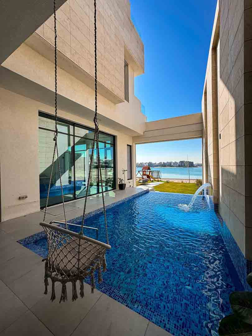 بلكونه معلقة كبيره مطلة على المسبح و الخور
