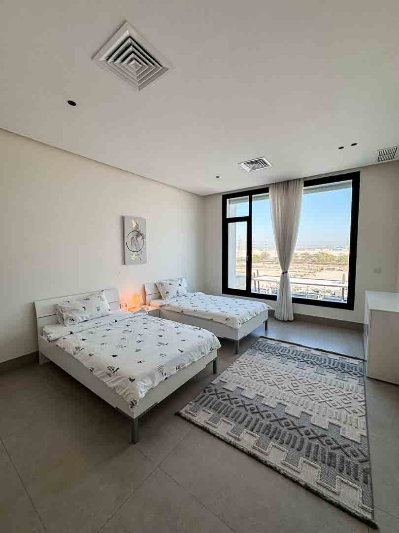 عدد غرف ماستر (٣ غرف بأسرة كنق وغرفتين بأسره توين) ٣ منهم في بلكونات مطلة