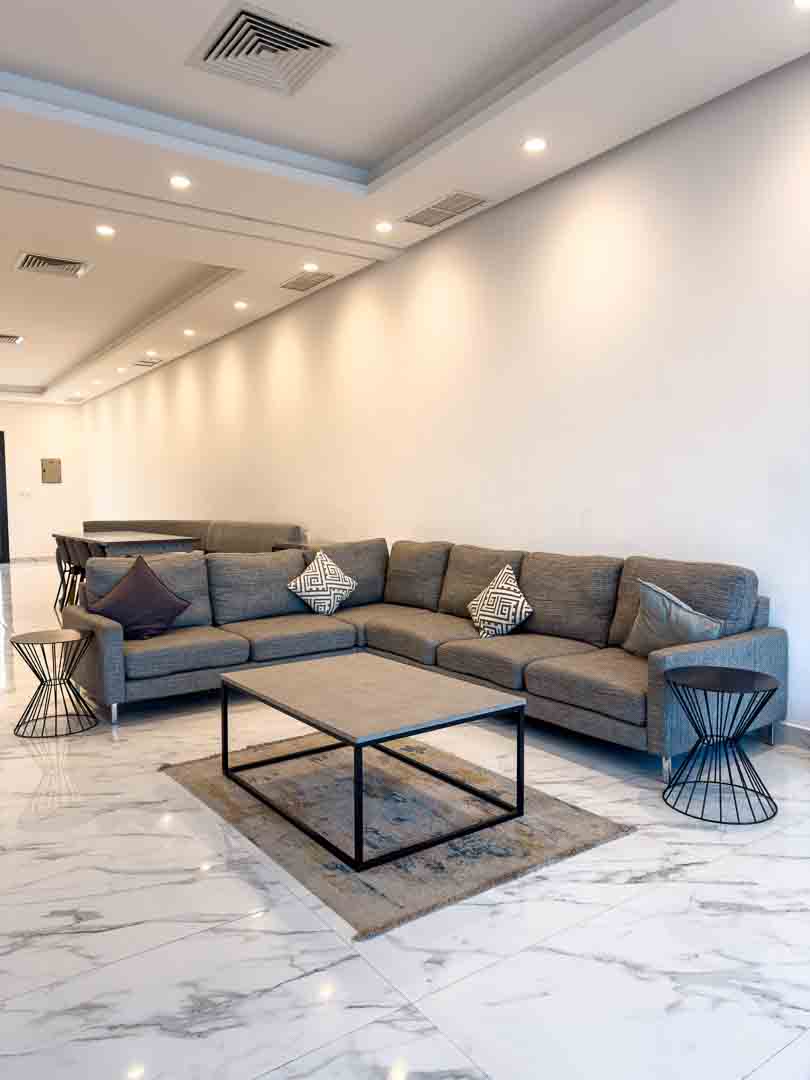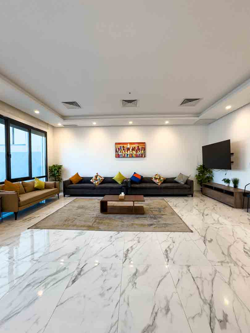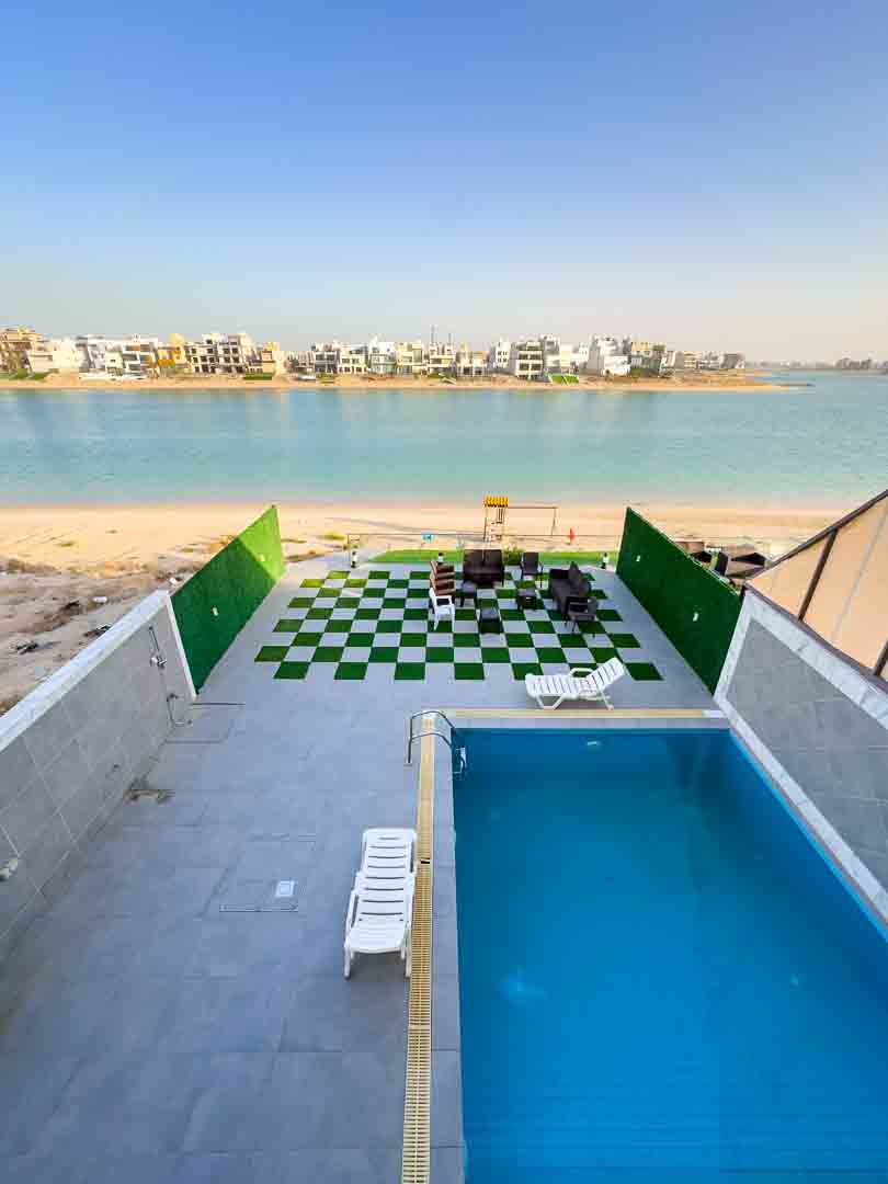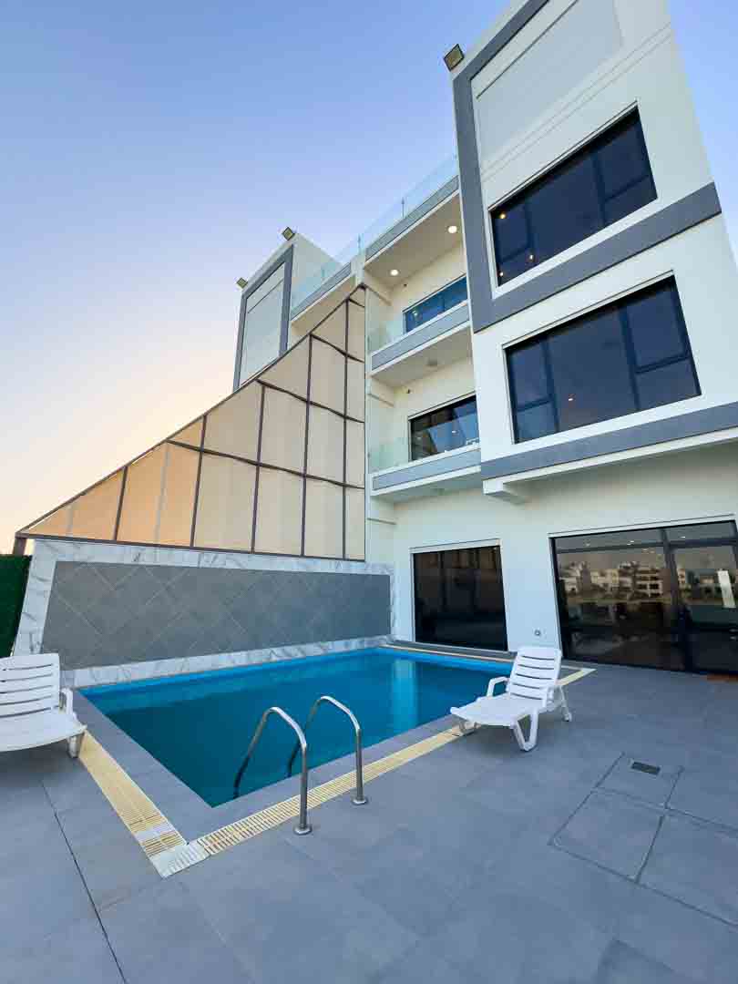 صاله مودرن مع اطلاله على المسبح والخور .