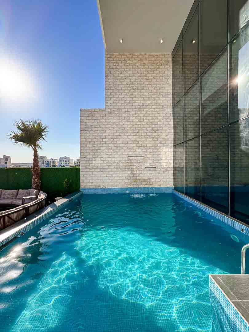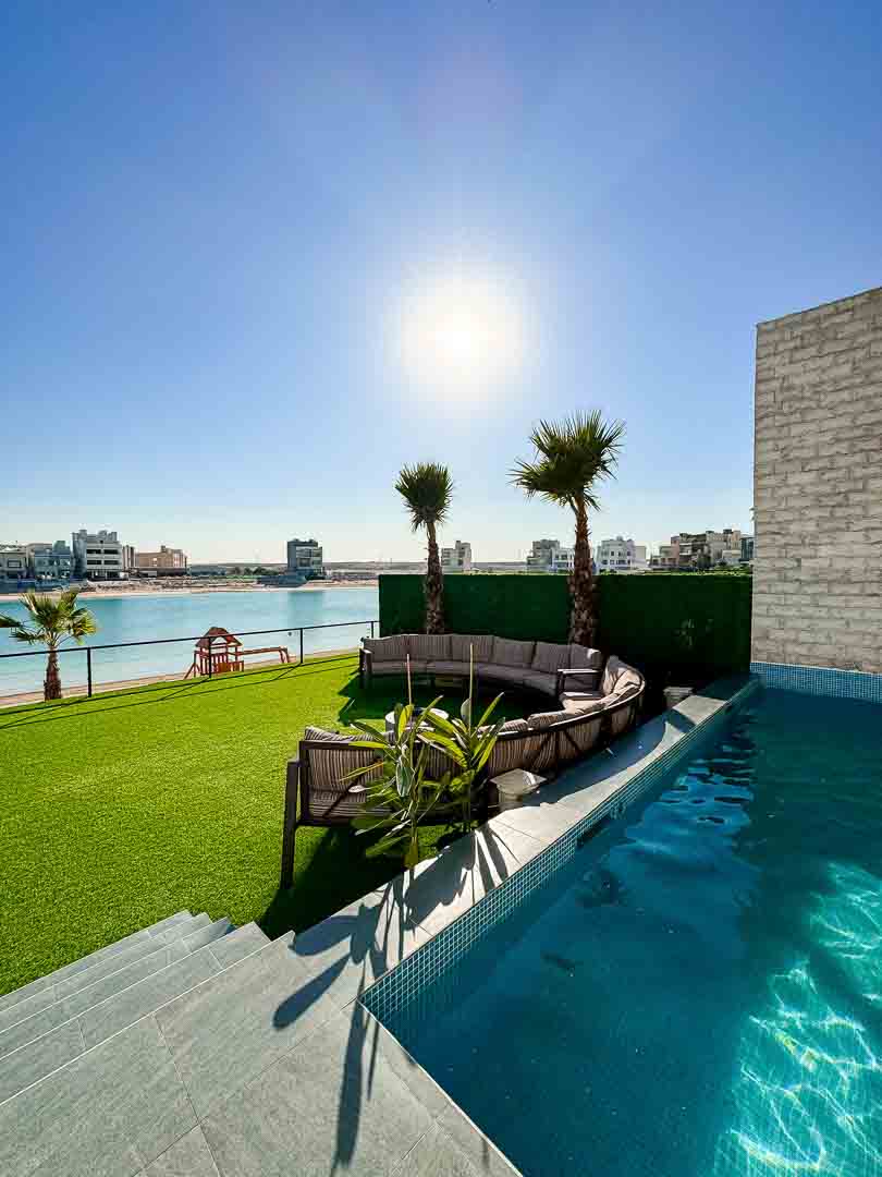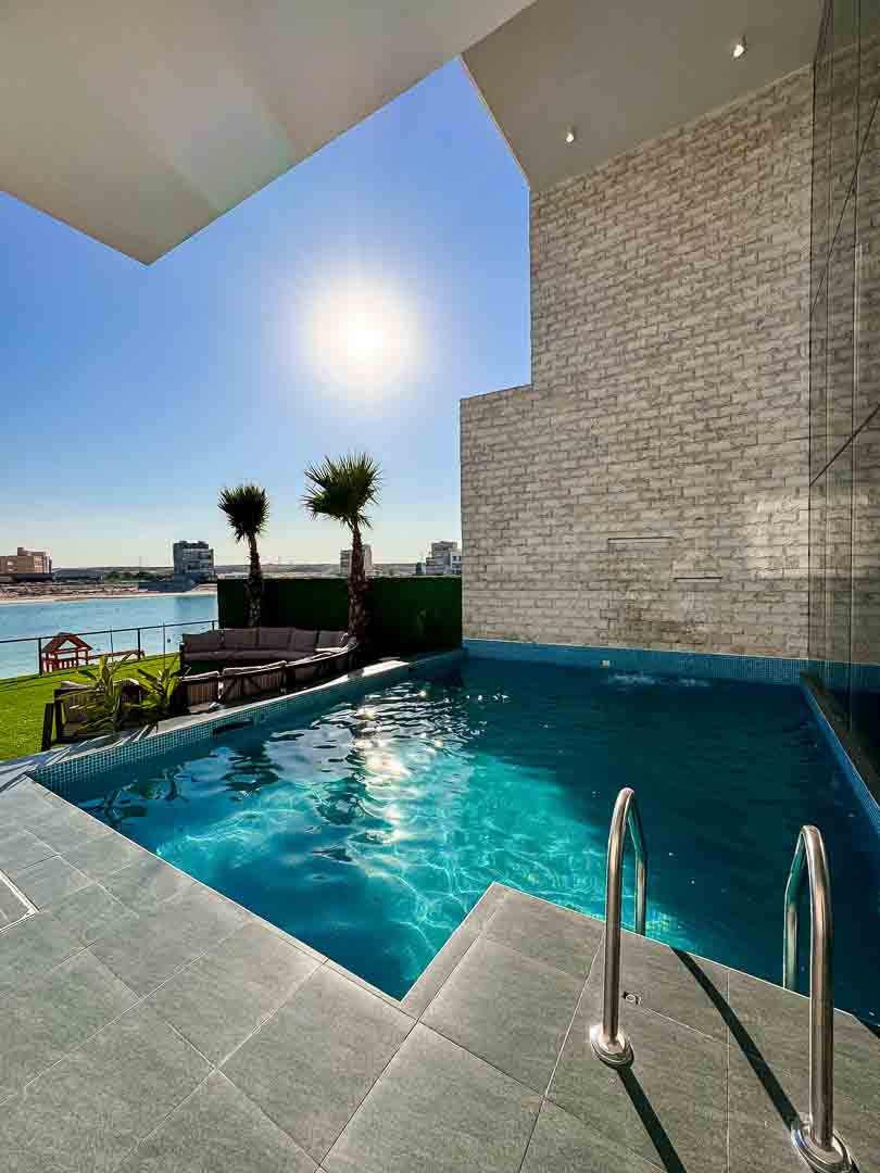 مسبح خارجي اطلالة عالخور + كراسي تان