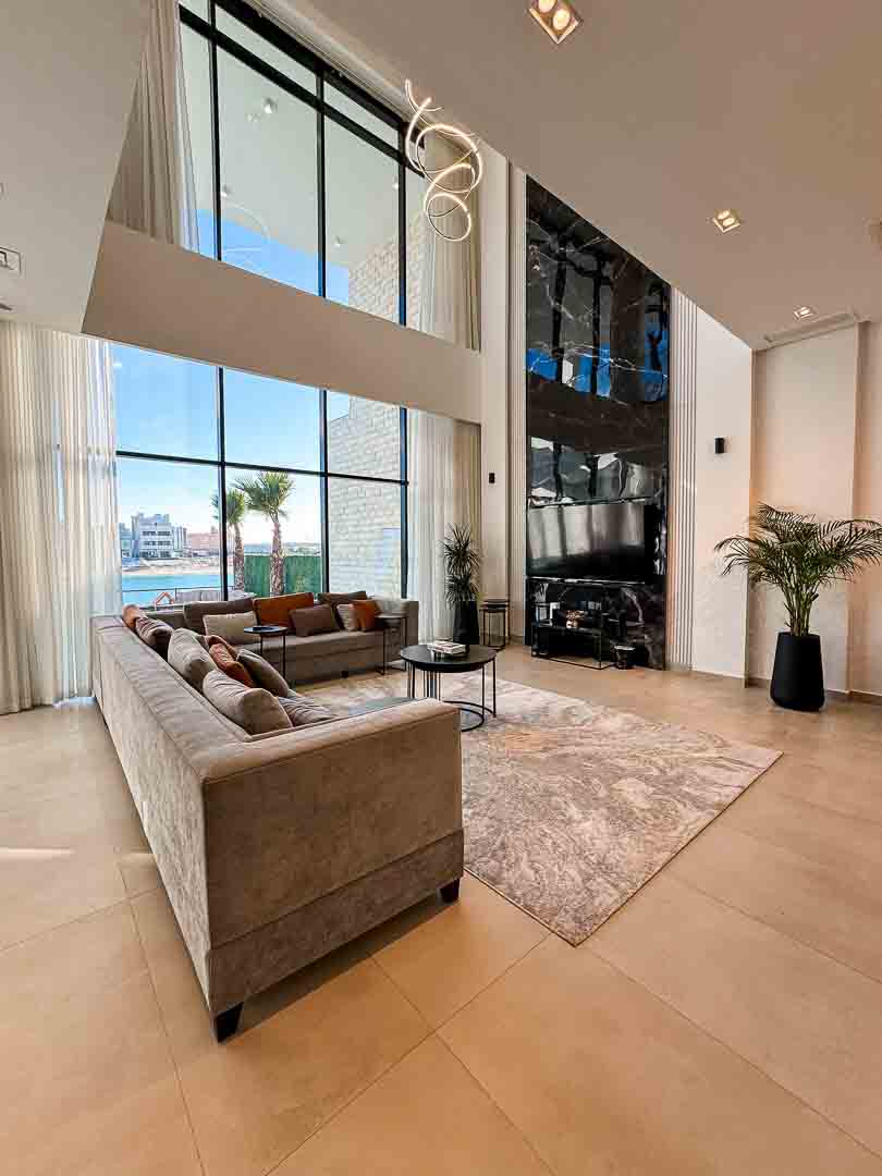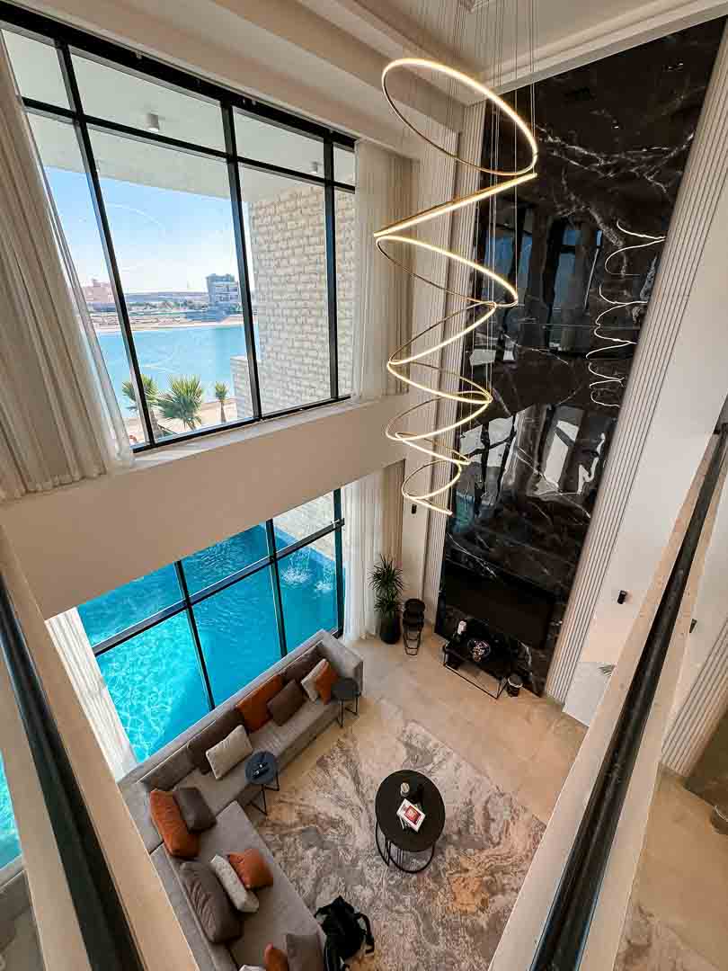 صاله مفتوحة اطلالة عالخور والمسبح Double high ceiling + بلكونة