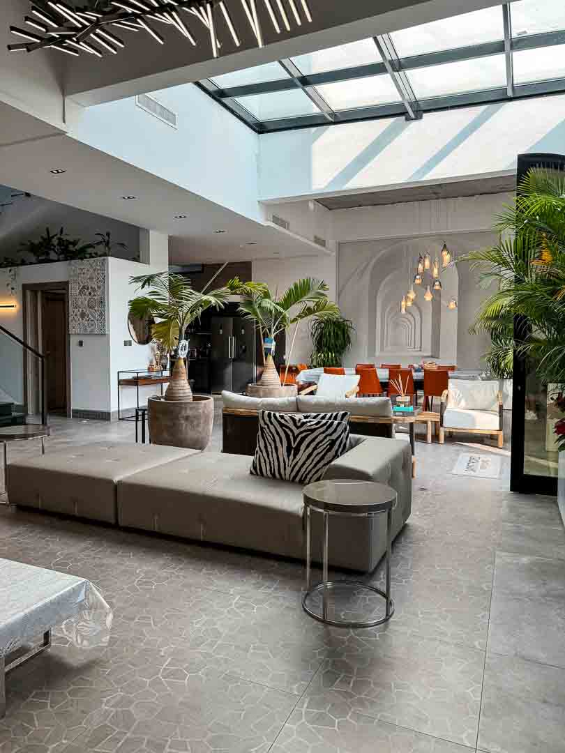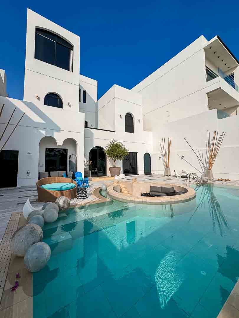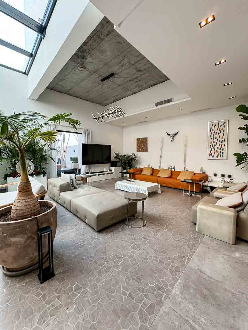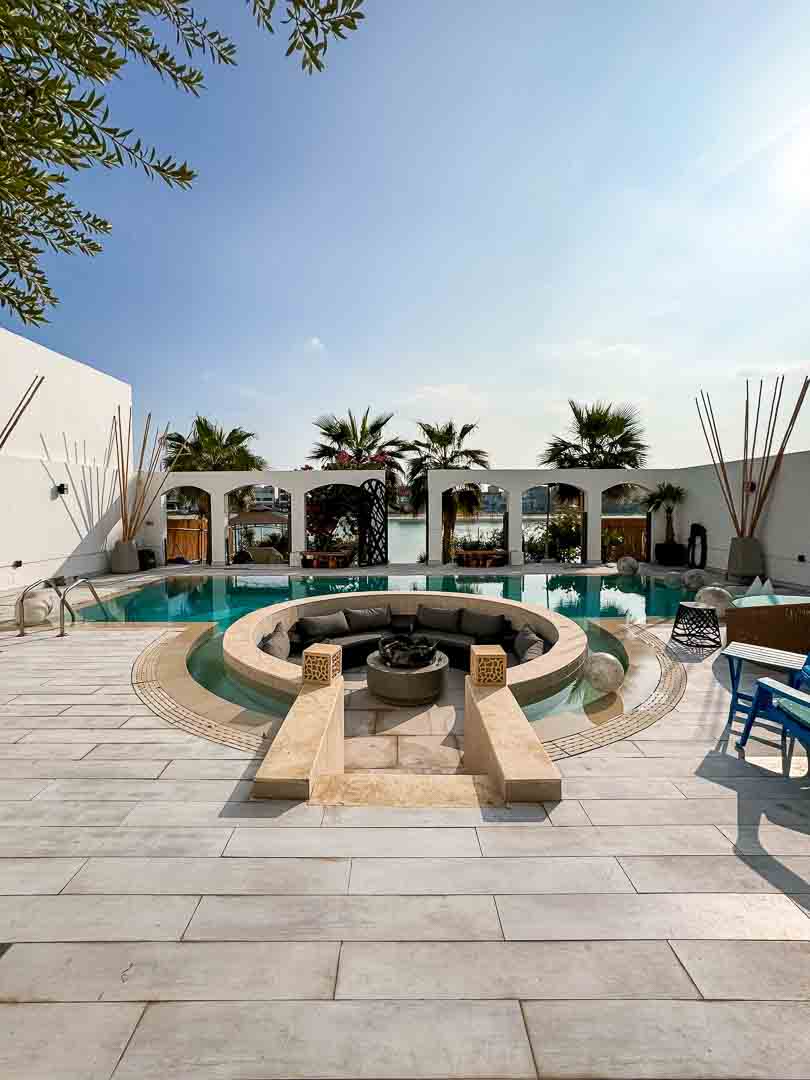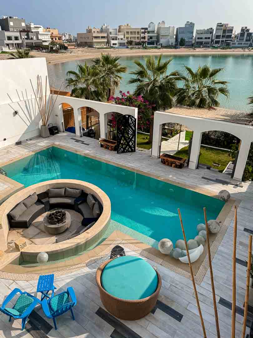 صاله مودرن مع اطلاله على المسبح والخور .