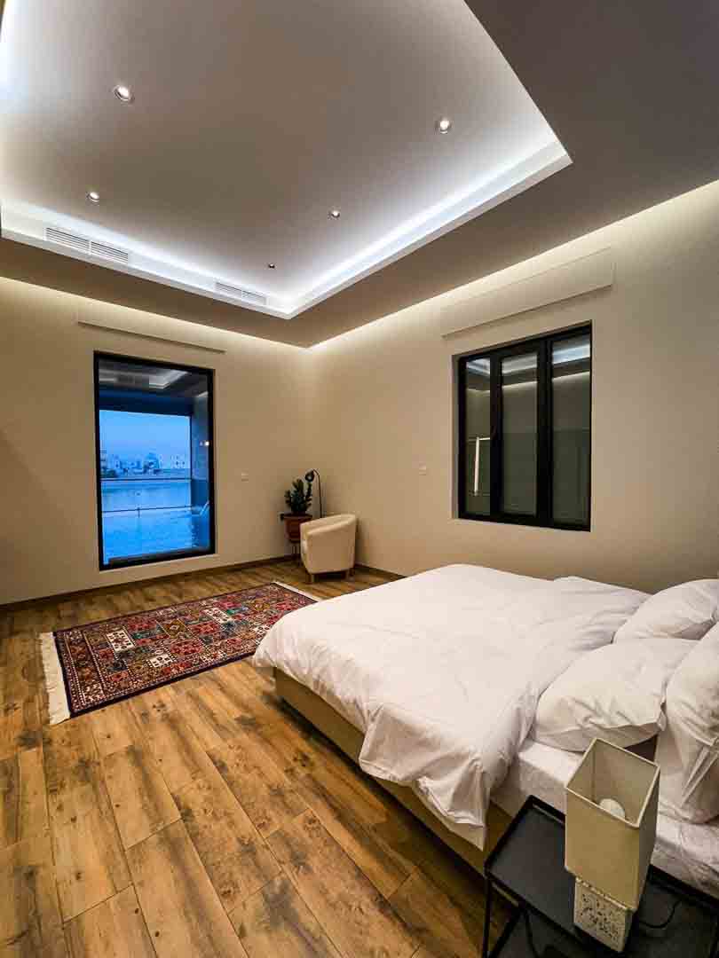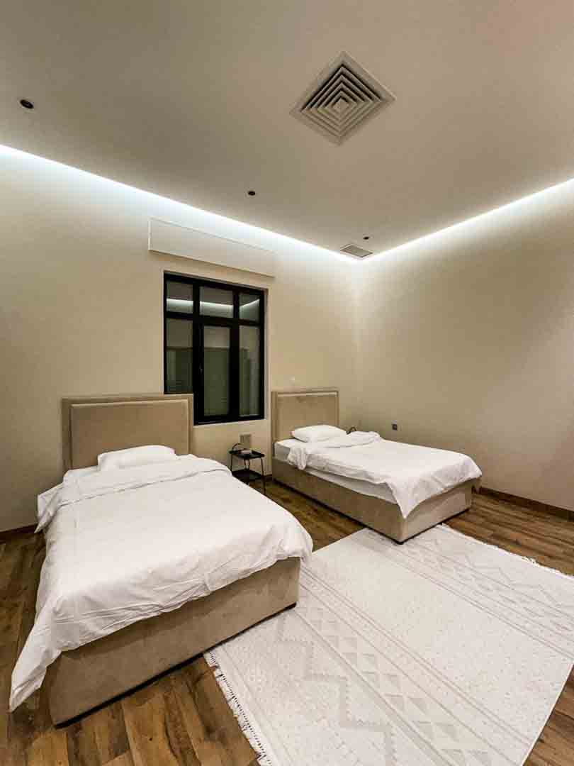 - عدد ٤ غرف ماستر (غرفة بسرير كنق و ٣ غرف بأسره توين)