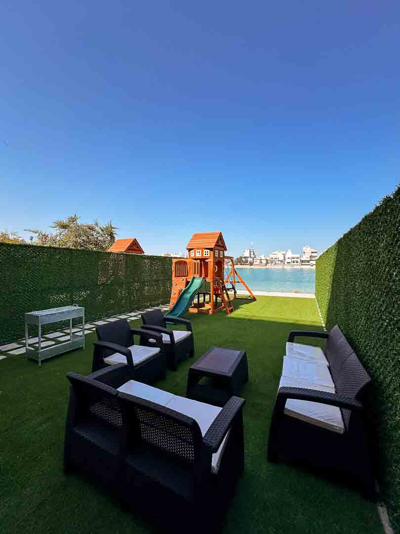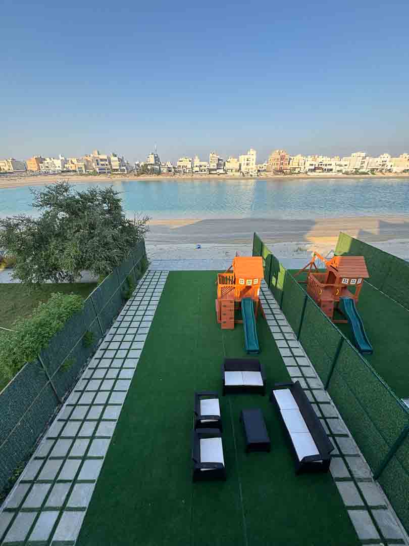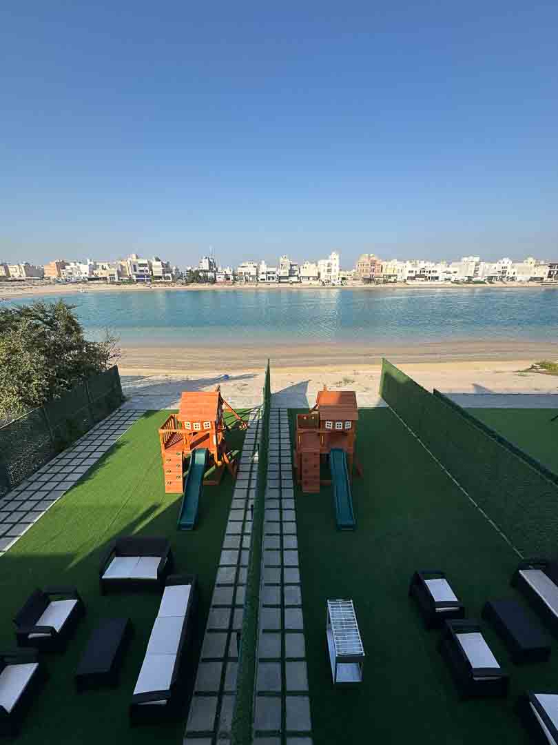 -حديقه كبيره عالبحر مع جلسات وكراسي والعاب اطفال