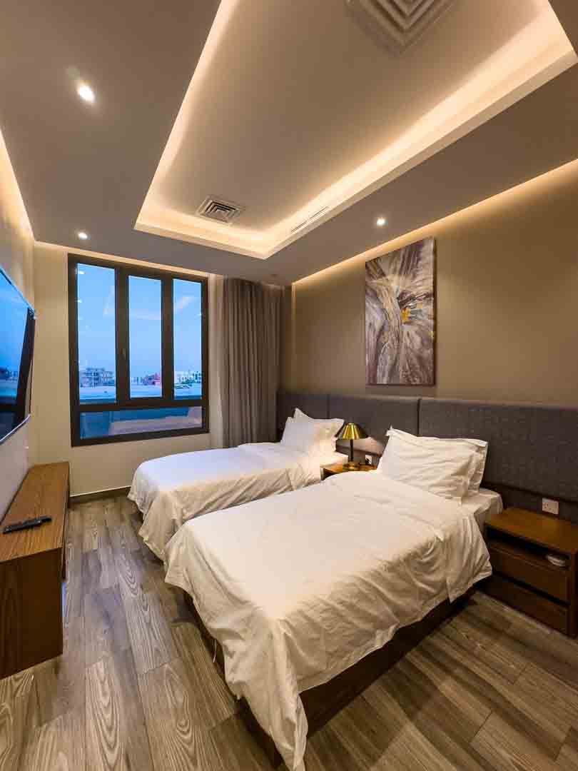 (غرفه سرير زوجي ) و (غرفتين single beds .)