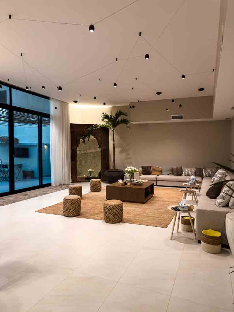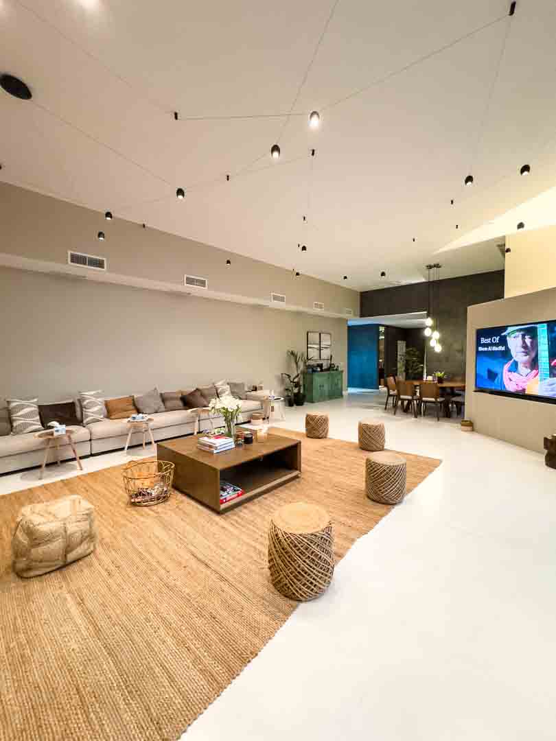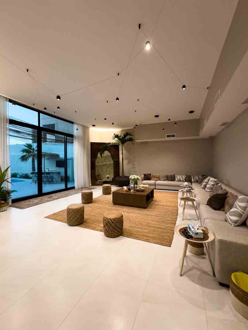 - صالة كبيرة مطلة على المسبح والبحر