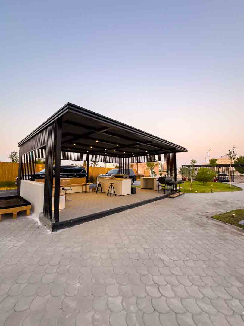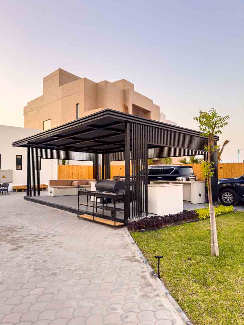 -حديقه كبيره مع جلسات تكفي ١٢ شخص وكراسي اضافية