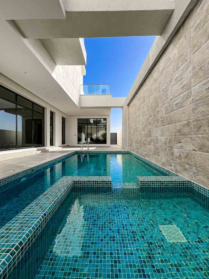 - حمام سباحه برايفت 8 ب 4 شكل مودرن وراقي يناسب جميع الاعمار والباب له قفل لحماية الاطفال