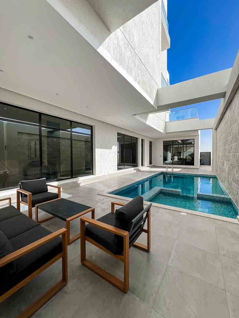 - 8 غرف ماستر جميع الغرف مطلة علي خور وبلكونات