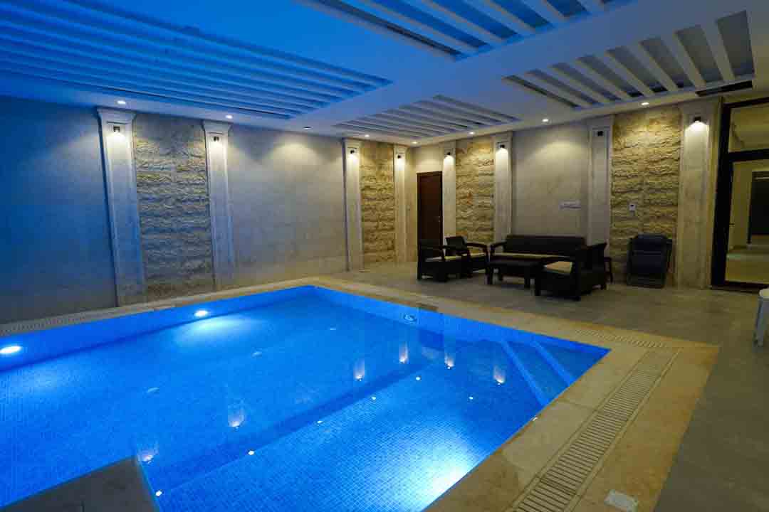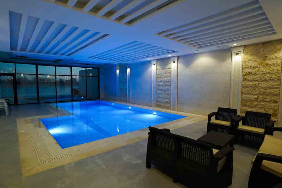 - حمام سباحه 10 ب 5 داخلي مع سخان مطل على الخور مباشرة عمق المسبح : 0.90 > 1.50 سم.