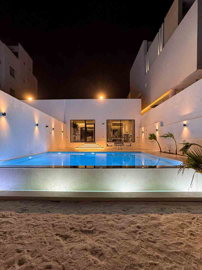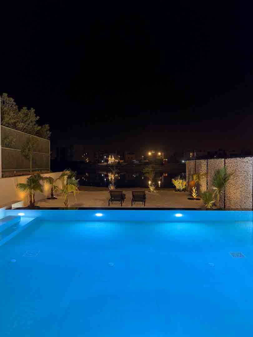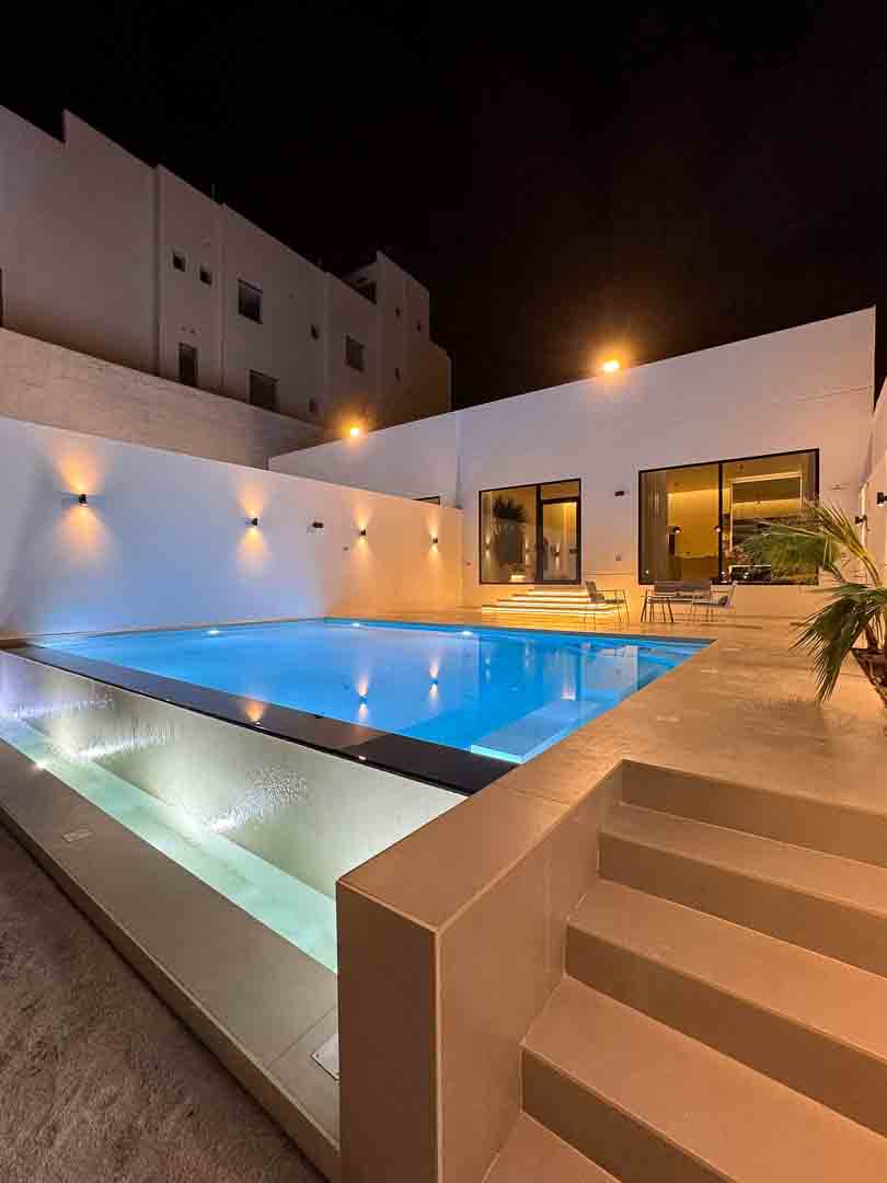 مسبح كبير 8 ب 7 بعمق 1.20 وكراسي داخل المسبح مع تدفئة