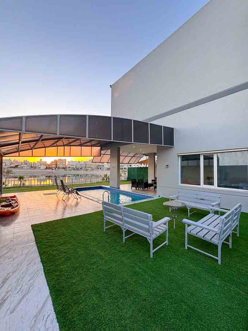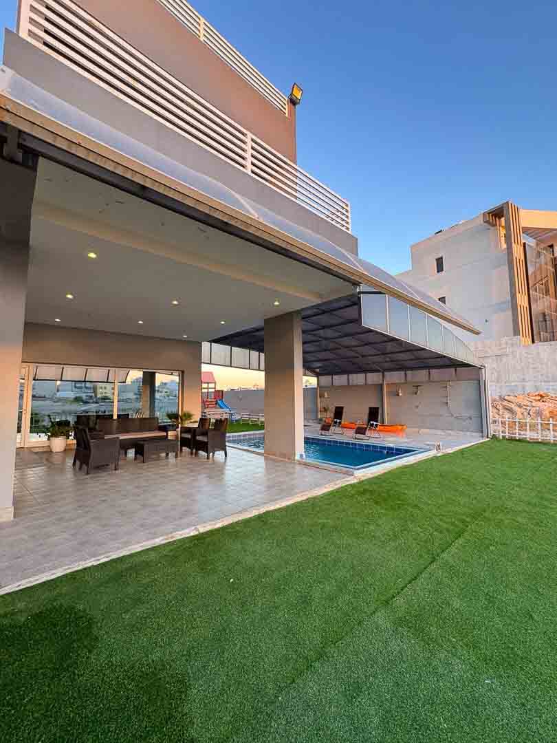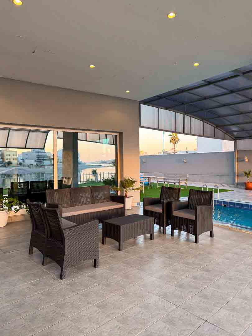 -حديقه عالبحر مع جلسات تكفي 7 شخص وكراسي اضافية + سرير تان 2