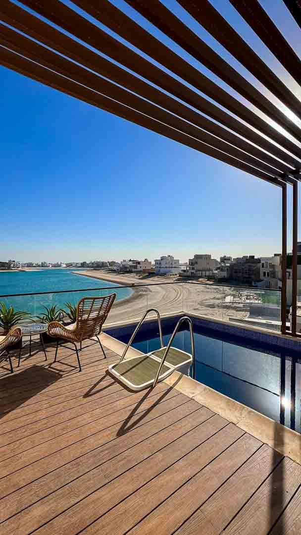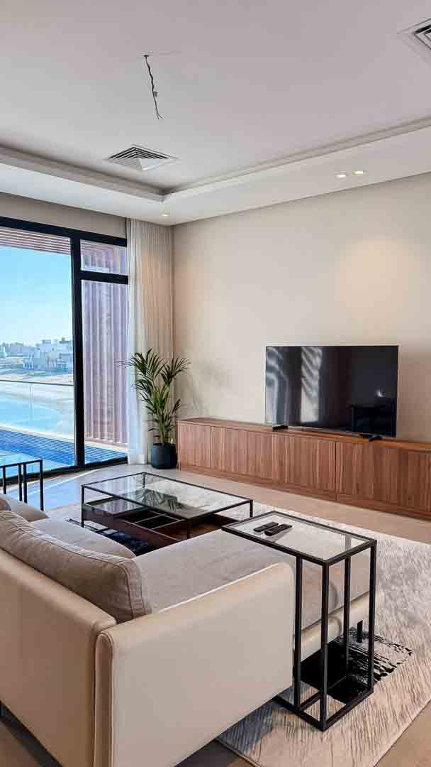 - صالة إطلاله بحريه ومسبح خاص مزود بتدفئه للشقة